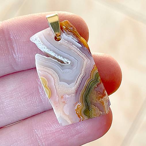 Prekrásny prívesok s prírodným plátkovým achátom nefarbeným - s výnimočnou kresbou, elegantný jedinečný prívesok.